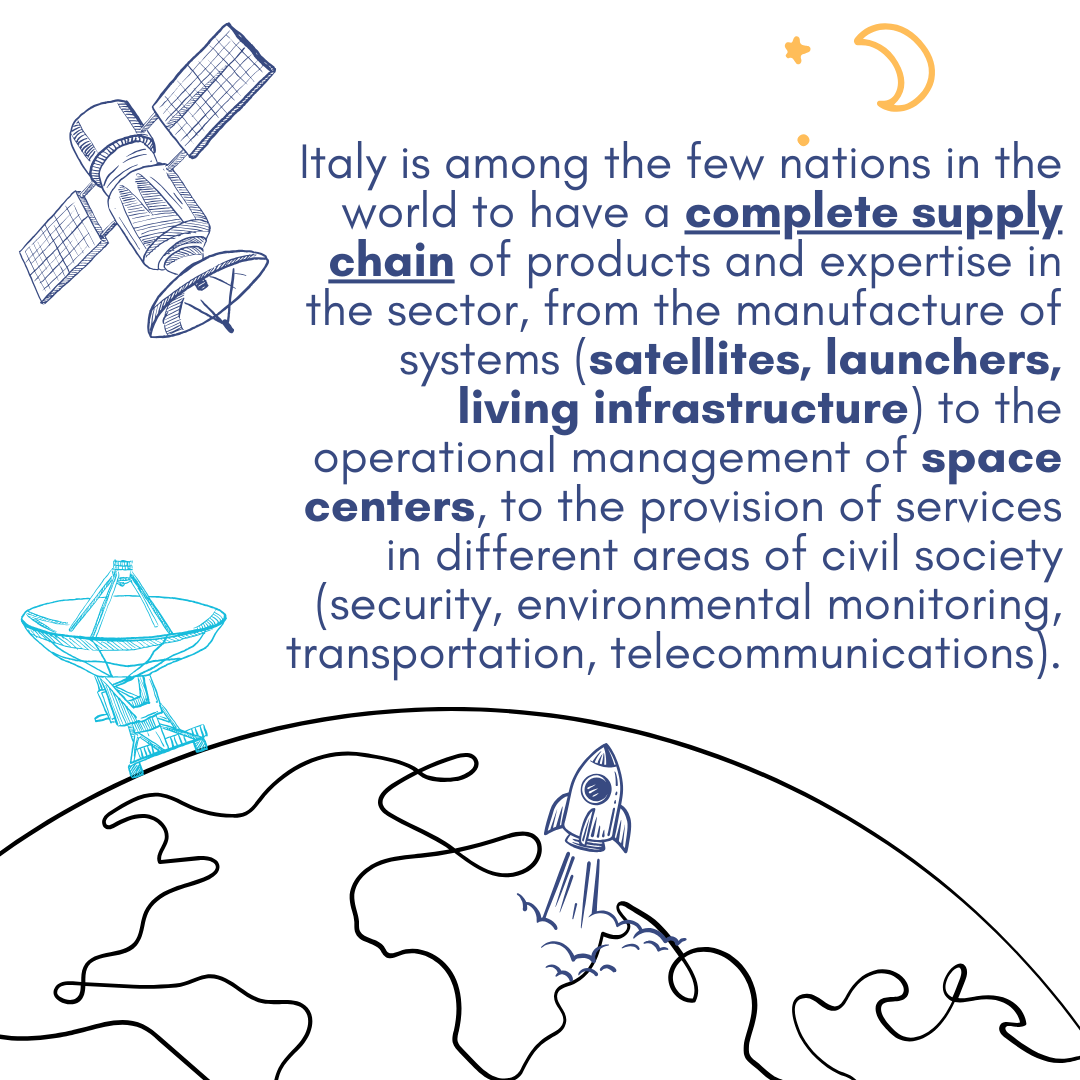 Italy is one of the few countries in the world offering a complete supply chain in space: from satellites and launchers to the management of space centres. Thanks to research, universities and industry, Italy leads innovation with advanced technologies at the service of all. A great national pride!